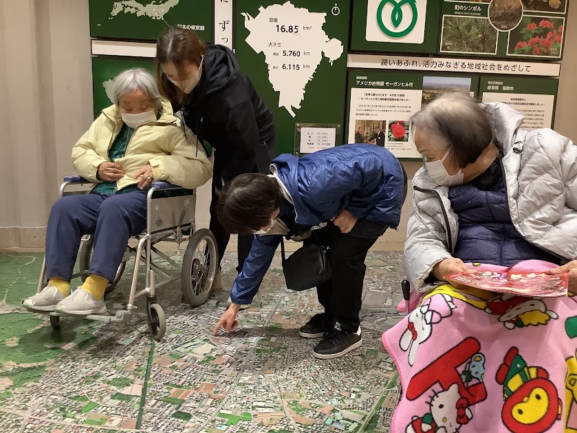 隣接する「けやき館」には瑞穂町周辺の地図もあり、「私の家はどこだろう?」「イオンモールはこれかな?」と、地図を見下ろしながら会話も弾み、楽しい時間に。